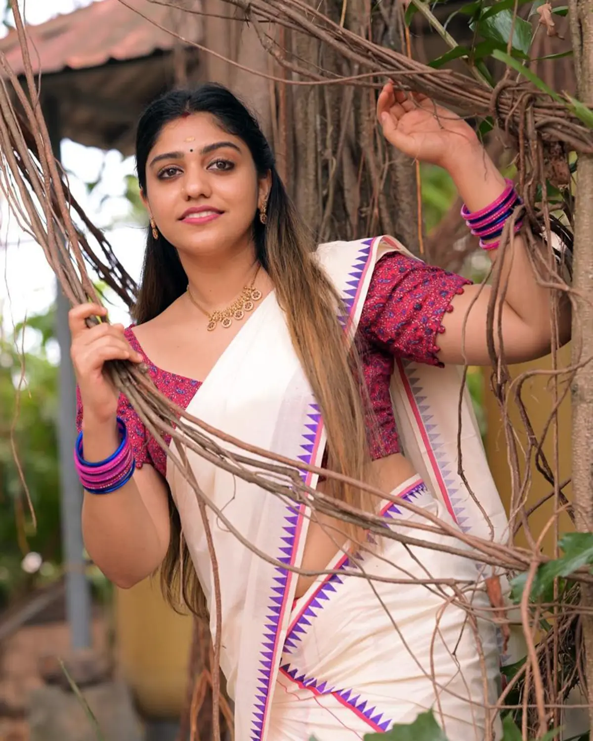Ahalya is a pure cotton premium temple printed settmund with printed blouse material.It offers excellent comfort, breathability and a soft ,graceful drapes.