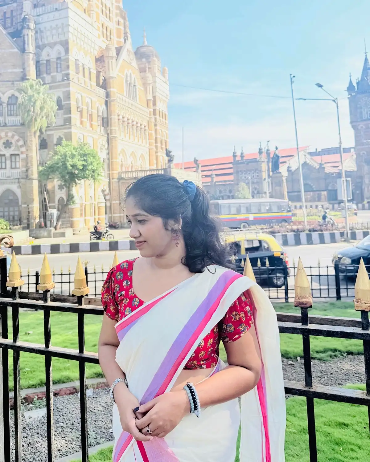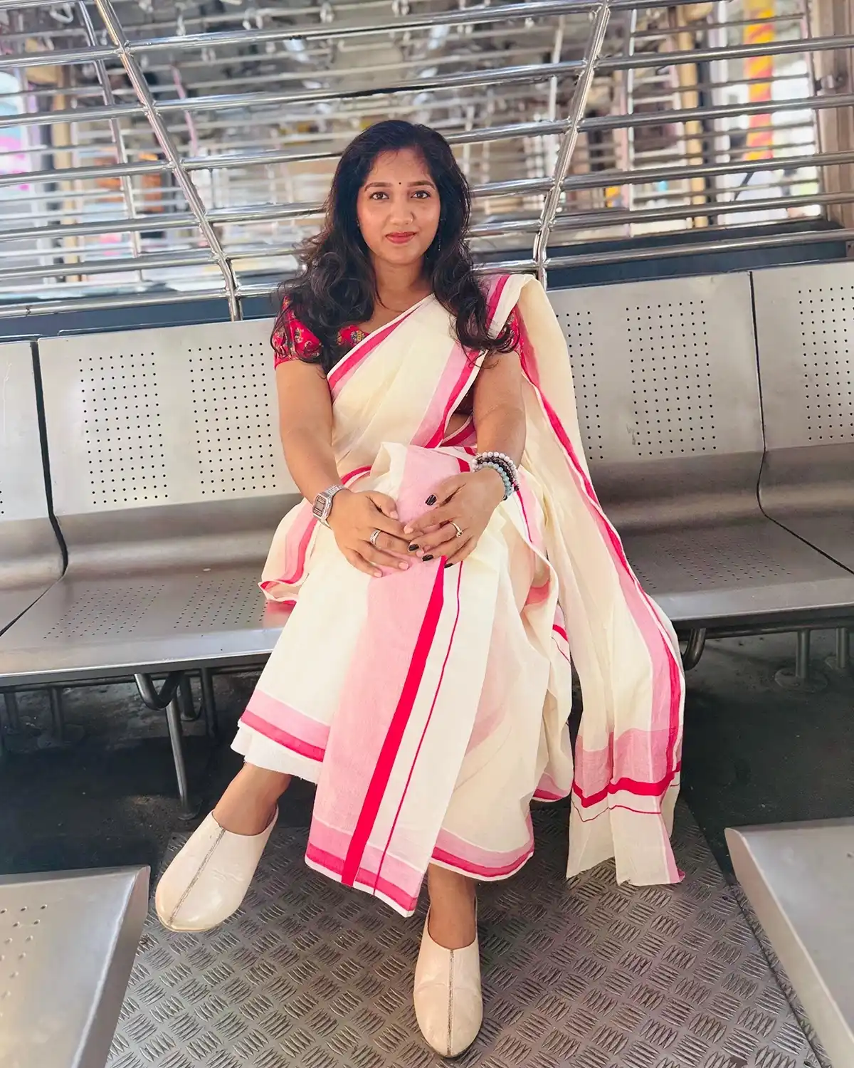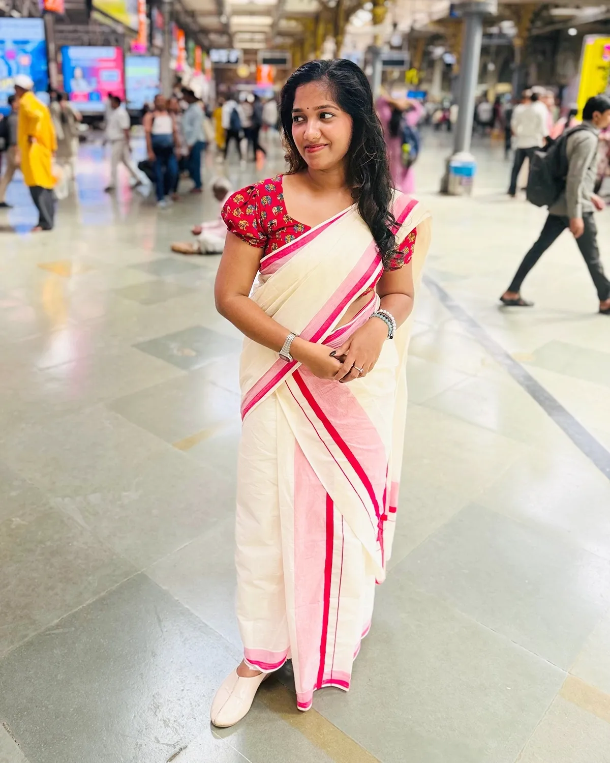 Pure cotton Elephant printed blouse material with mulloth and kattikkara combined settmund