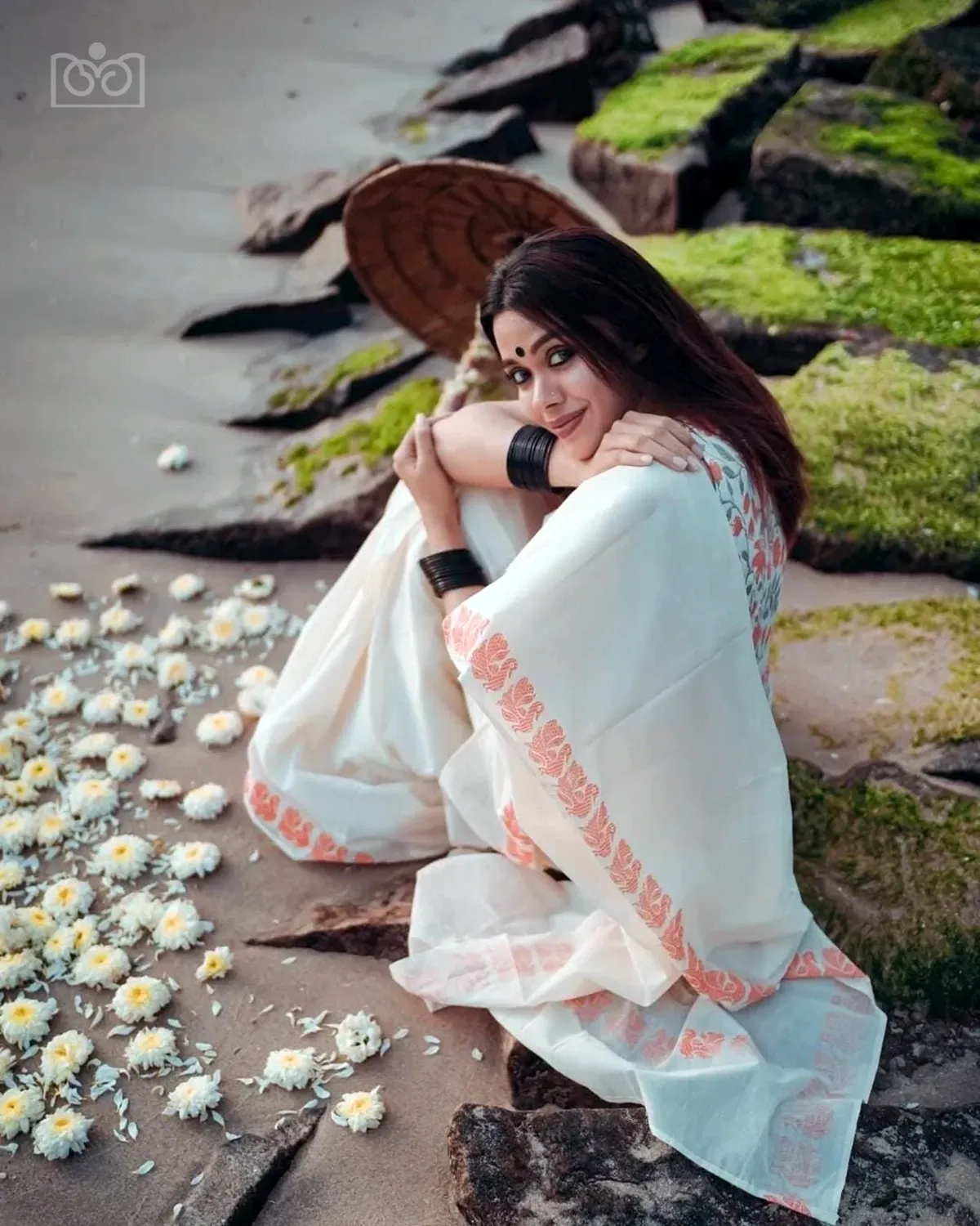 Pure cotton traditional kerala Swan printed settmund with floral printed blouse material