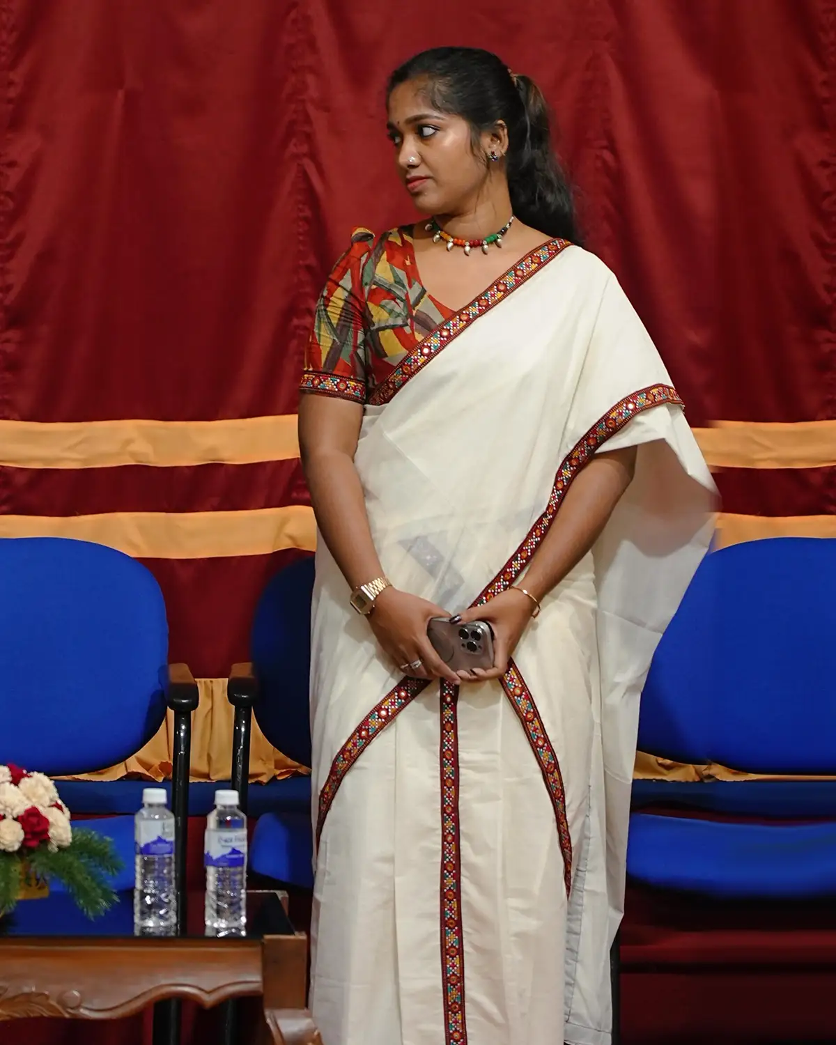 Mirror worked Lace border stitched settmund with printed blouse material with lace border .
