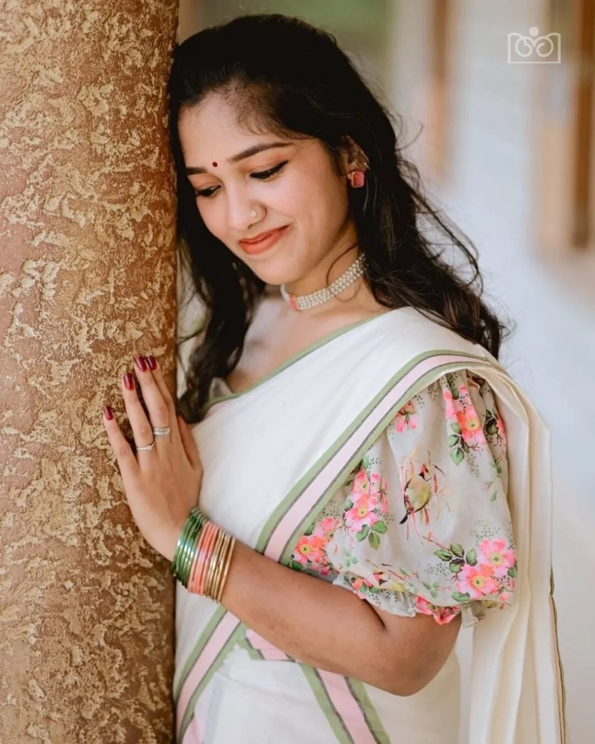 Vasantham is a pure cotton premium Mulloth Settmund with a printed weaving blouse material..Crafted from high quality cotton, it offers excellent comfort ,breathability, and a soft, graceful drape.